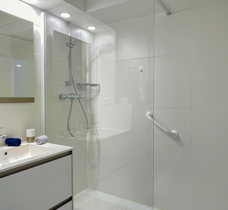 - Salle de bains avec douche ou baignoire (selon disponibilité), WC, sèche cheveux