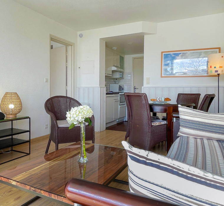 • Un séjour avec canapé gigogne (2 couchages de 80 x 190) ou canapé convertible (couchage de 140×200) selon la disponibilité
