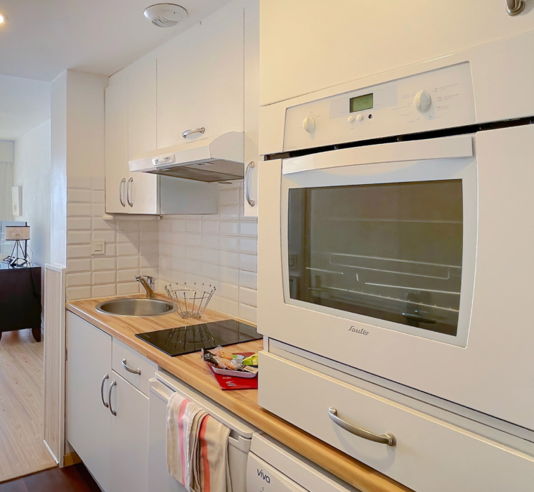 • Cuisine équipée avec plaques de cuisson vitrocéramique (2 à 4 feux), frigo table top avec petite partie freezer, petit four et petit lave-vaisselle, cafetière filtre et bouilloire électrique